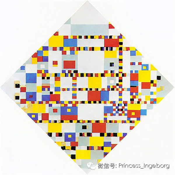 “所有的现代舞蹈在如此有力快速的舞步面前都显得软绵无力。”蒙德里安如是说。他是一个舞蹈迷,一个瞧不上多愁善感的探戈,而钟情于爵士,特别崇尚查尔斯登舞--其以奔放热情而著称。