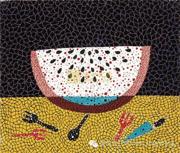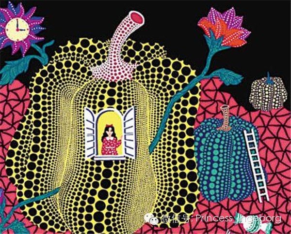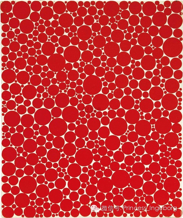 1929年生于日本的草间弥生幼年时代就对现实生活视域中的圆点充满兴趣。镜子、圆点花纹、生物触角和尖端都是她后来作品中重复出现的母题。