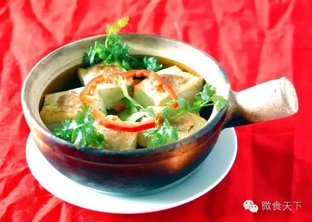 酿豆腐是客家第一名菜,源自中州传统的生活习俗特色。据说这道菜源于北方饺子,因南方少麦,客家人便用酿豆腐寄托对北方饺子、中原文化的感情,所以就形成了这道别具客家特色的不只吃豆腐的酿豆腐。