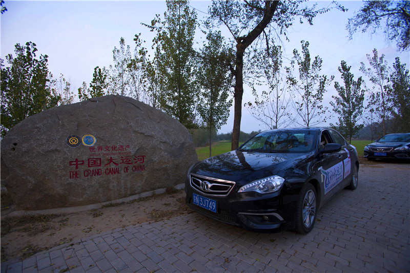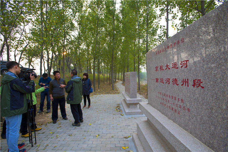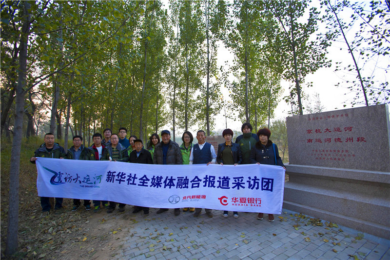 新华社“重访大运河”融合报道记者团车队抵达南运河德州段。