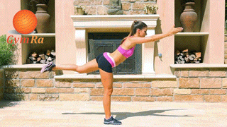 停留数秒,回到左脚向后伸平的姿势,重复进行