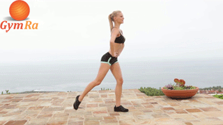 双腿交替向后各做一个弓箭步,向右方做一个弓箭步