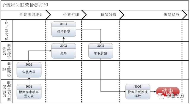 - 每日21点后商品部价签员将当日生效价签分发至各区域商品部员工。