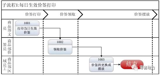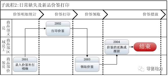 此流程包含每日生效价签打印、日常缺失及新品价签打印、联营价签打印、变价价签打印四个子流程