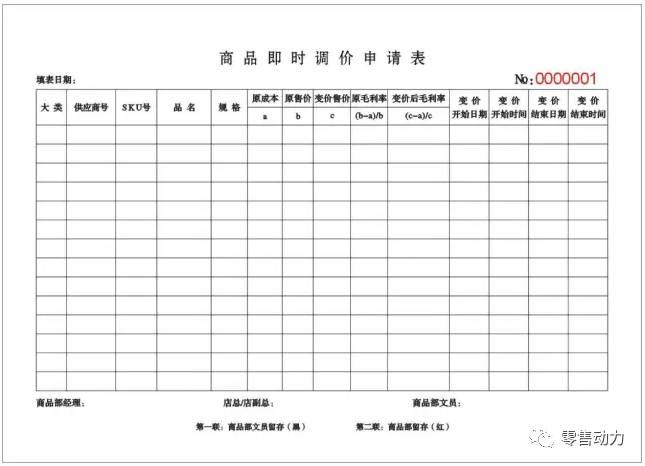 4003 商品部价签员将《商品即时调价申请表》交店总经理审核后交商品部文员。
