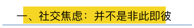 但是,友心人(微信号yosumn)想强调,社交焦虑并不是一个非此即彼的定义,而是一个连续的维度。从社交无畏,到生活中的轻微社交焦虑/亚社交焦虑,到临床意义上的社交焦虑障碍,我们都处在这条线中的某个位置。http://ww1/large/005xSAh5jw1f2h277piizj30hs02m0sy.jpg|