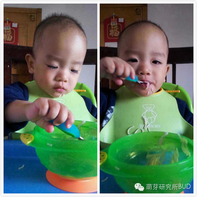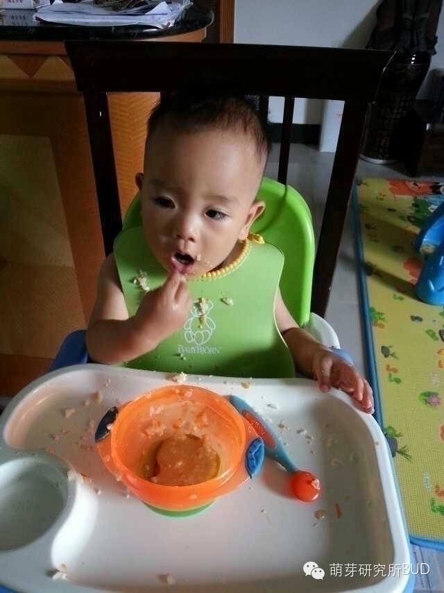 且看我前面说的,我妈带的时候是宝宝抓加家长喂。但你放心他一旦尝试过快乐的滋味就不会让你一口一口的喂的。