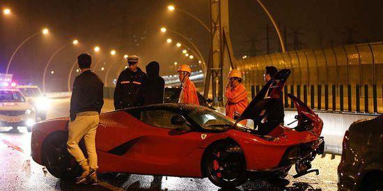 还有一起是发生在一年后,上海中环,秦奋将一辆价值2300万的全球限量款法拉利撞报废,据说当时修理费就要一千万,但秦奋还悠闲得坐着玩手机。想象不到他有钱的程度。