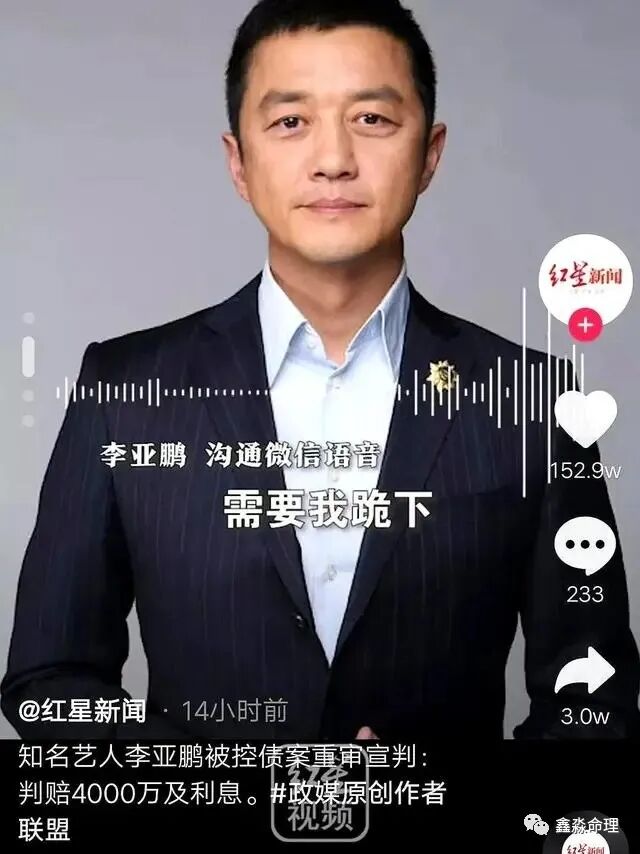 3月16日,北京市朝阳区人民法院对知名艺人李亚鹏被控“欠债4000万元”一案作出重审判决,李亚鹏和其兄李亚炜向北京泰和友联投资有限公司支付4000万元及利息。让李亚鹏再次回到人们的视线。面对4000万巨额欠款,李亚鹏苦苦哀求追债人“我已经无路可走了,你们需要怎么样我都可以,需要我跪下,需要我趴下,我都可以”,让人心酸。 李亚鹏是一个选错行业的男人,他的问题值得我们反思,李亚鹏拿着一手好牌,是怎么打烂的?李亚鹏经商具备很多优势,李亚鹏娶“天后”王菲,说明李亚鹏还是个有心机的男人,李亚鹏想用王菲的影响力和资源成就一个男人的梦想,这一步棋走得并没有错,李亚鹏选择了房地产行业,也没有错,房地产行业过去十几年是中国的暴利行业,李亚鹏选择了一个有资源和资金的女人来结婚,又选择了一个暴利行业,为什么经商没有成功呢?李亚鹏失败的根本原因是不适合经商,并不是所有的人都适合经商,经商也需要天赋。下面我们从命理的角度分析一下李亚鹏为何屡屡投资经商失败?