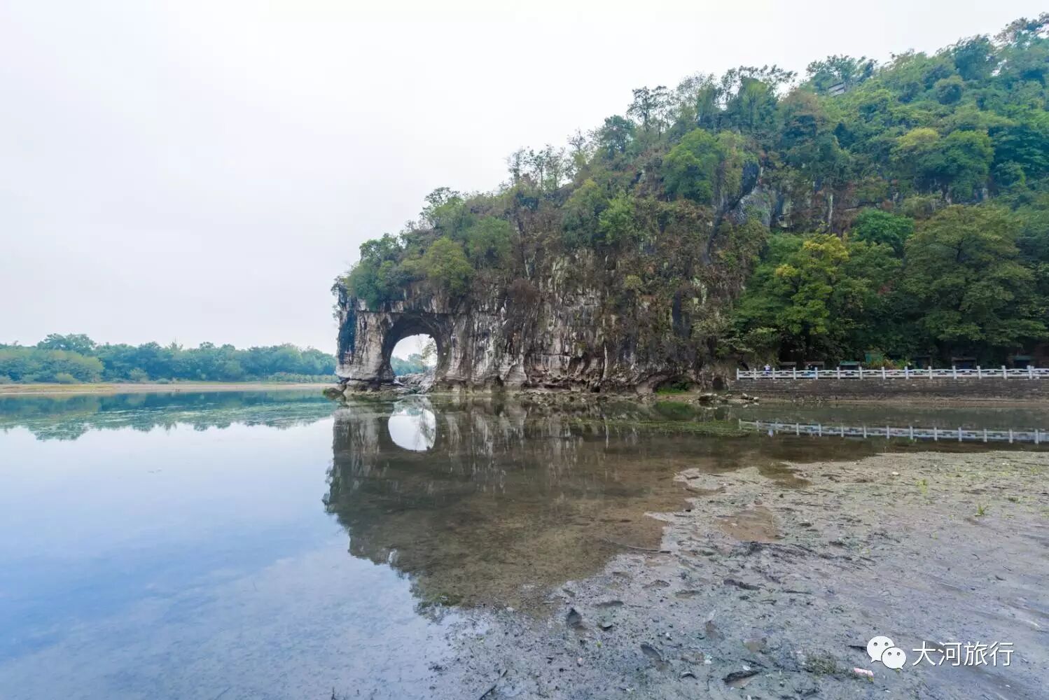 冬季,漓江水位较低,白天的风景跟晚上的灯光完全没法比,不过作为桂林的标志,象鼻山对于游客来说还是很有吸引力的。