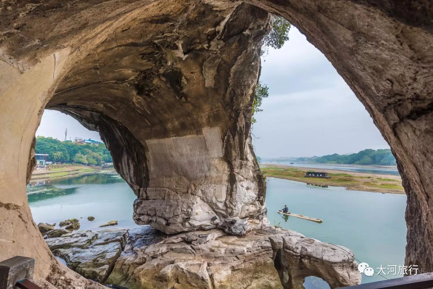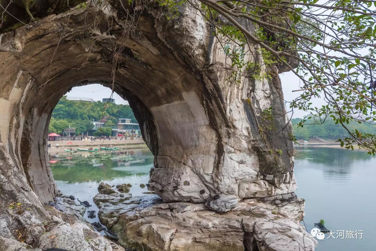 象鼻山的象鼻处其实是个大溶洞,感叹于其造型奇特,世间稀有。