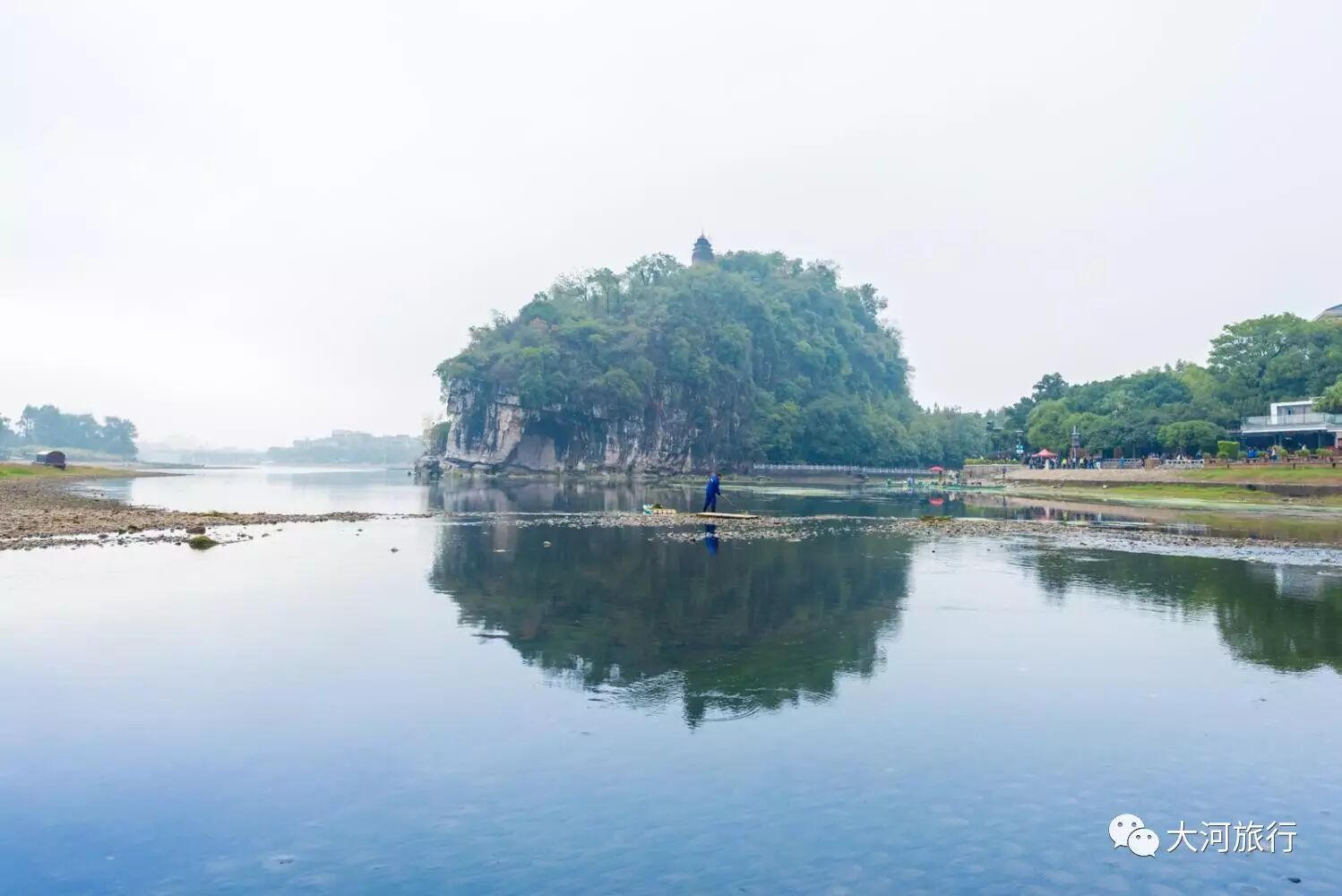 绕着象鼻山转一圈,江面平静,偶有小船经过,如这里的生活一般恬淡悠闲。