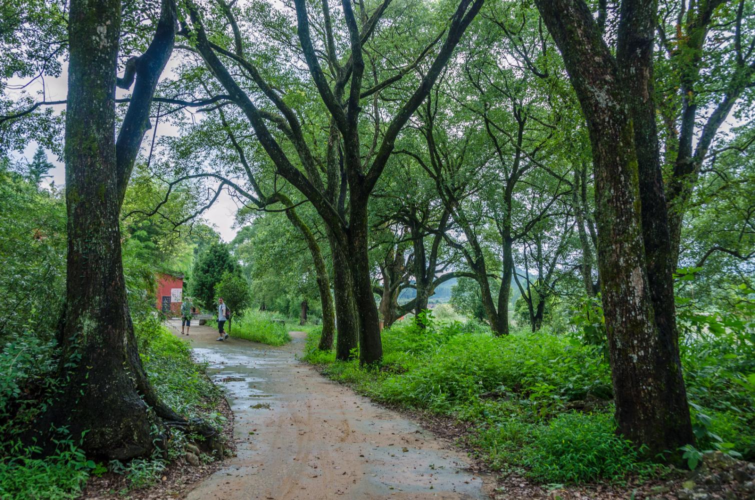 距离遗址1公里,这个村子叫做城村,面积不小,村子的历史也十分悠久,在村口靠近河边有一排粗大的樟树,最粗的一株已经有600多年,要6个人合抱。