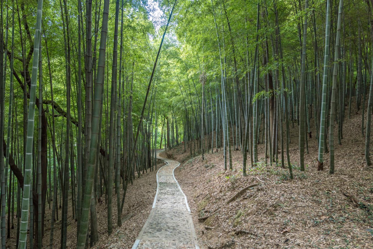 山间的竹林绿荫浓密,走在其中很有意境,是上海为数不多的天然森林氧吧。