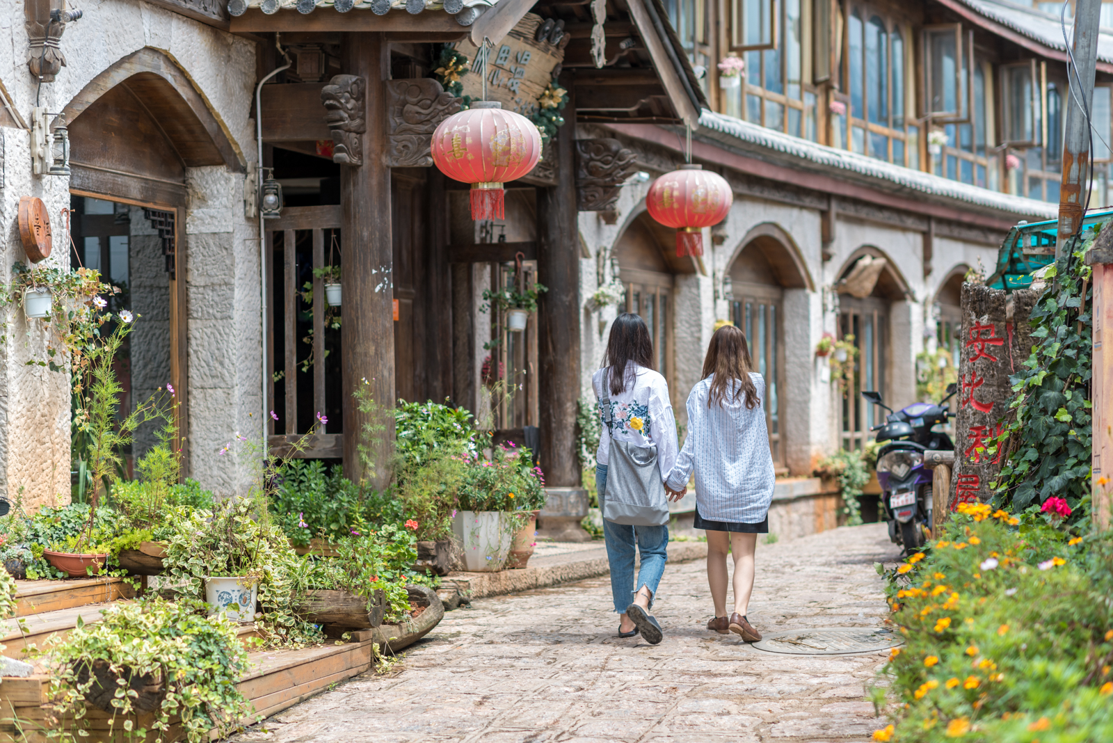 束河的小巷子也特别多,适合拍照赏景,当地人家的院子装修精美,开办起了特色民宿。腊排骨是要尝尝的,而当地还有一种叫做水性杨花的蔬菜也很有特色。