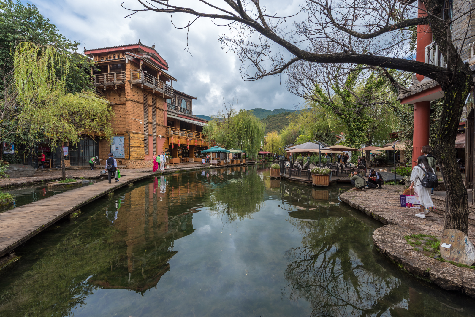 束河也是茶马古道上的重要集镇,这里如同一个小型的丽江古城,有四方街,有无数的客栈民宿和饭馆,还保留着马帮的习俗,游客可以骑马游览。青龙桥建于明朝万历年间,距今已有400多年历史。