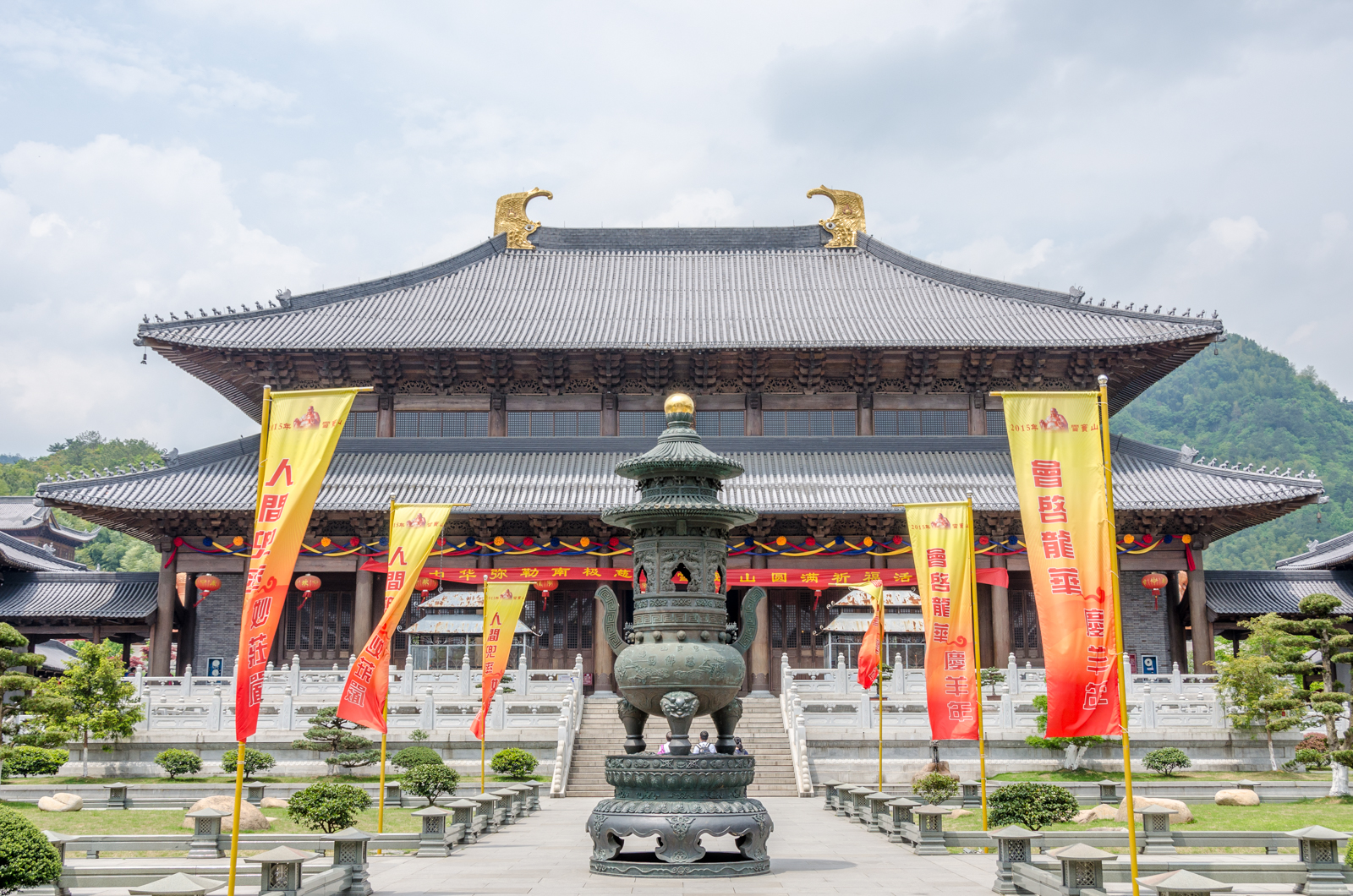 现在的雪窦寺占地8万余平方米,可谓是规模宏大,爬上高高的台阶到弥勒佛像处,可以俯瞰这座寺庙,建筑整齐而庄严,游人不断。