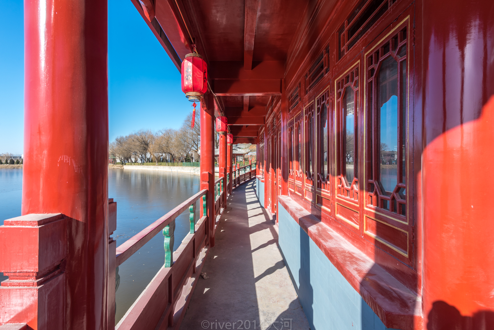 景区的面积还是挺大的,按照规模来看,是中国十大影视基地之一,有一个单独的红楼梦园,还有北普陀寺,明清街和皇宫建筑群,中间是一座湖,冬天湖面都结冰了。