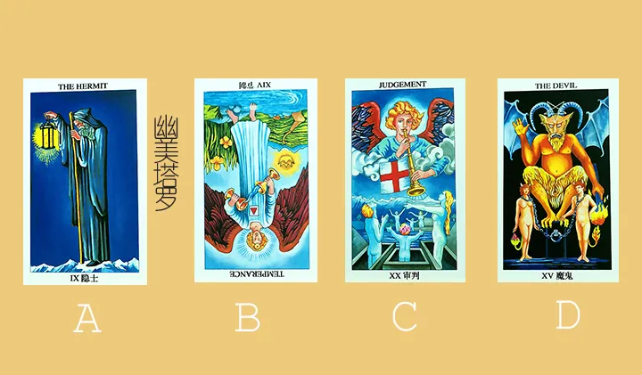 下面从左往右(ABCD)凭感觉,选出一张牌