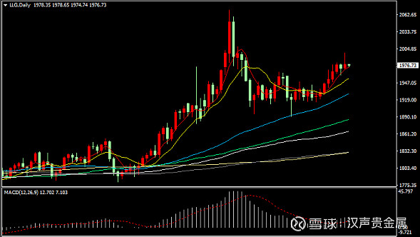 昨日傍晚现货黄金一度冲高逼近2000关口,盘中金价最高触及1998.25美元/盎司,但在美盘时段金价震荡下行,回吐之前大部分涨幅,美盘金价最终报收于1978.48美元/盎司,昨日金价涨幅约0.22%。
