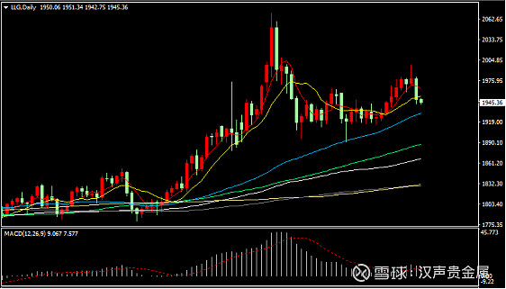 昨晚受美联储官员鹰派言论刺激,美元指数触及两年多来最高水平,令现货黄金承压,金价在日高位1981.50美元/盎司大幅下跌回落,美市尾盘金价跌破1950美元/盎司关口,金价最低至1943.67,较日高下跌达37美元,创金价一周来新低,美盘金价最终报收于1949.89美元/盎司,昨日金价跌幅约1.46%。