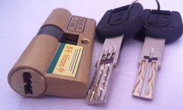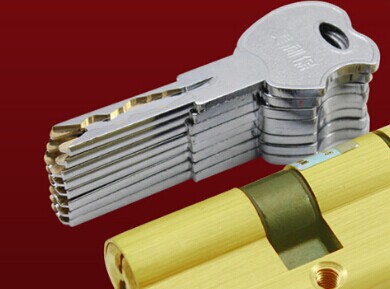B级锁:B级锁钥匙为平板钥匙,有双排弹子槽,跟A级锁不同的地方在于钥匙面多了一排弯弯曲曲不规则的线条。锁芯主要类型为3种,电脑双排锁芯、双排月牙锁芯、双面叶片锁芯。防技术性开启时间5分钟内,互开率高。通过强扭工具,1分钟内可以开启锁芯。
