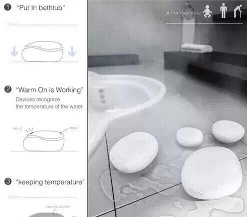 这块 " 石头 " 里面附带一个温度控制传感仪可以精确的控制与显示浴室里的实施温度,并对水温能进行持续性的加热。