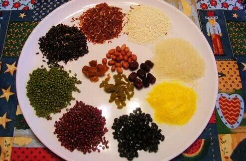 根据传统,腊八粥的基本材料包括:大米、小麦、玉米、红枣、莲子、薏仁米、花生、桂圆肉、各种豆类(红豆、绿豆、黄豆、黑豆、赤小豆等)等,对于上班族和不少学生族来说,要把这些全部“集齐”显然有些费劲,可以任选几样。这些熬粥用的原料,基本上都没有经过研磨加工,谷类表层所含的维生素、矿物质等营养素和膳食纤维都会全部保留下来,避免了营养物质的流失。