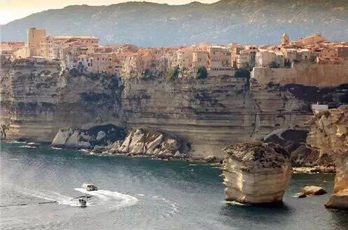 博尼法乔(Bonifacio)位于科西嘉岛最南端,与意大利撒丁岛隔海相望。博尼法乔古城周围遍布堡垒遗迹。古城本身矗立在一块高而狭窄的岬角上,岬角受水侵风蚀,形成独特的岩溶风貌。古城海边有一条长达1500米的弯弯曲曲的海岸,形成一道如画的风景。
