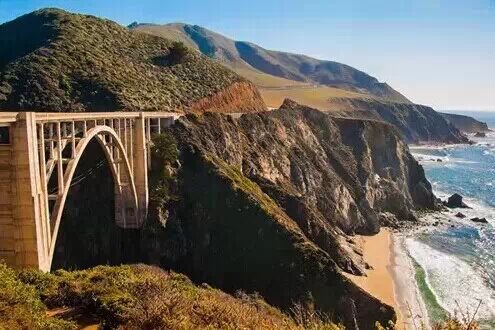 大苏尔(Big Sur)位于美国加州,沿着著名的加州一号公路蜿蜒140公里。它是由圣卢西亚山从太平洋中突然升起所形成的。照片中的比克斯比大桥,1932年建成之初是世界上最大的单拱水泥桥。小编本人曾有幸路过此地,开车行进在一号公路上,一侧是浩瀚无边的太平洋,浪花拍击着沙滩和悬崖,另一侧是起伏的绿色山峦,美不胜收。