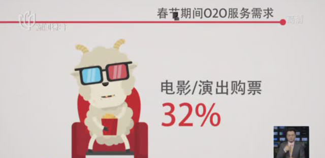 春节期间消费者对网上服务的需求主要体现在三个方面:演出购票、餐饮预订、外卖送餐。