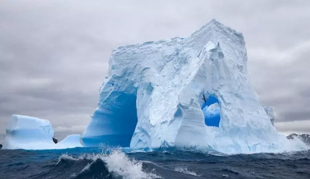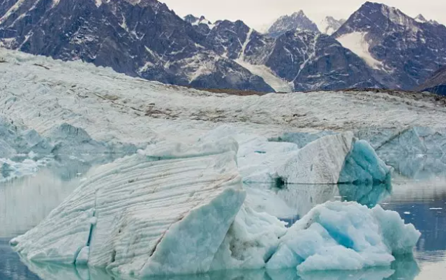 照片显示,格陵兰东部一座正在融化的冰山呈现出微弱蓝光。美国国家雪冰数据中心说:“这是由雪中的冰晶造成的。光波进入雪或冰中时,冰粒就会散射大量光。尽管光的大部分被反射,但依然有少量光吸收红光,而不是蓝光。”