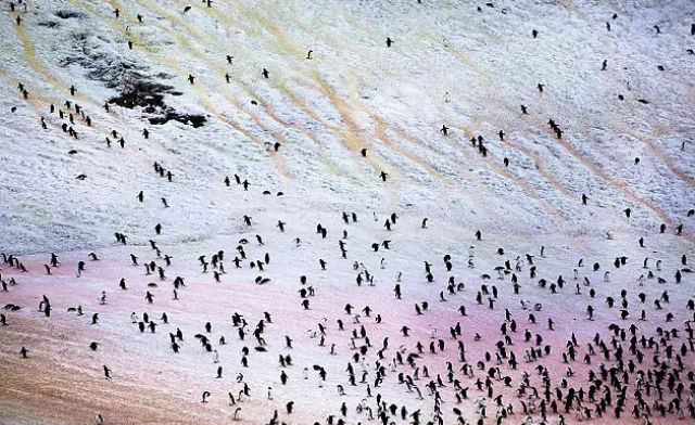 2014年,一位生活在美国华盛顿的摄影师在南极洲的一个遥远基地生活两个月,揭示了该地区呈现出不寻常颜色的奥秘。加斯顿-拉克姆拍摄的惊人照片展示了该地区的亮粉色、绿色和红色。它们是由从企鹅粪便到繁殖旺盛的海藻等各种原因造成的。