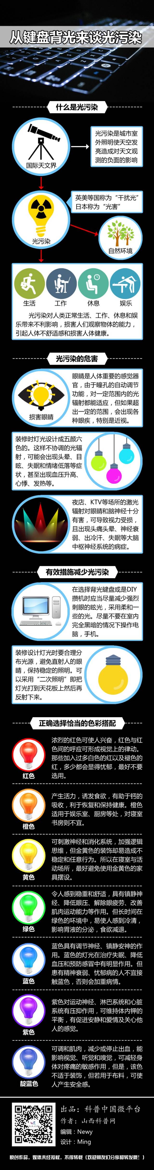 专家表示,目前国内的光污染比较严重,一部分是自然光的镜面反射或光的反射,例如玻璃幕墙、磨光瓷砖等;另一部分是灯具或者LED屏幕产生的光污染、彩光污染,包括家庭使用强照射、眩光的灯具,室外广告LED屏幕照射下来的强光,或者娱乐场地的旋转的彩光等。光污染,也是近视的主要原因。今天,我们从键盘背光来谈谈光污染。