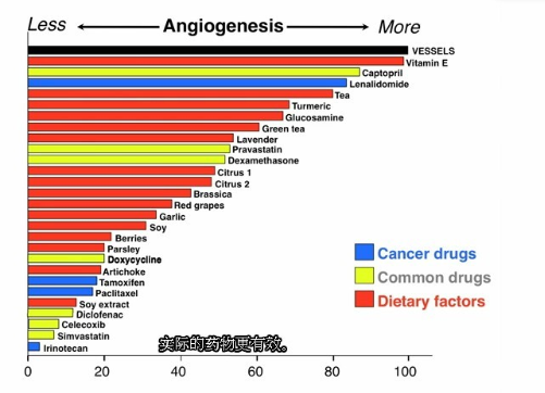 从上图导致癌症的环境诱因中,30%至35%来自于饮食,饮食与癌症发生关系密切。如果我们一开始就通过饮食加强我们体内的防御系统,阻止“肿瘤血管”的产生,就能显著降低癌症的发病率。
