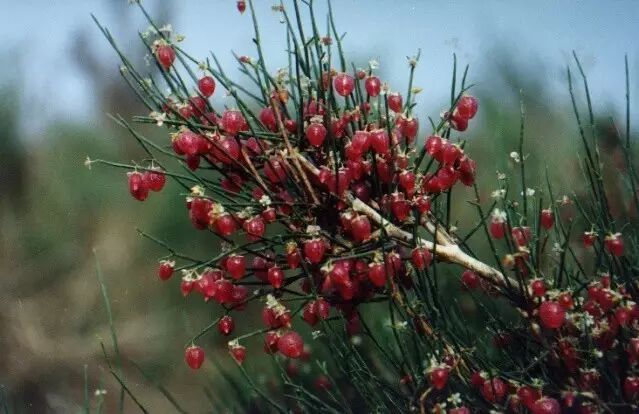 一是它基本没有叶片,叶子缩小成托叶状包裹在枝条的节间,使枝条节间很短,拐来拐去,使它们有了“拐枣”之名。叶子变形后,光合作用的功能转交给了当年的新枝,新枝是绿色的,也有叶绿细胞,可以执行同化作用功能,这种绿色新枝也叫“营养枝”或“同化枝”。