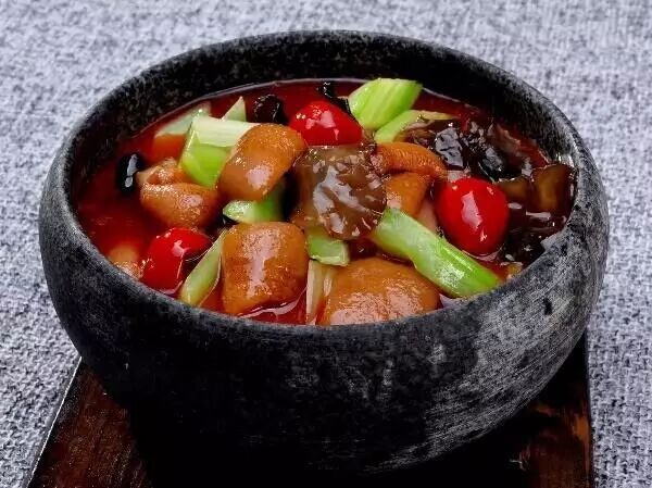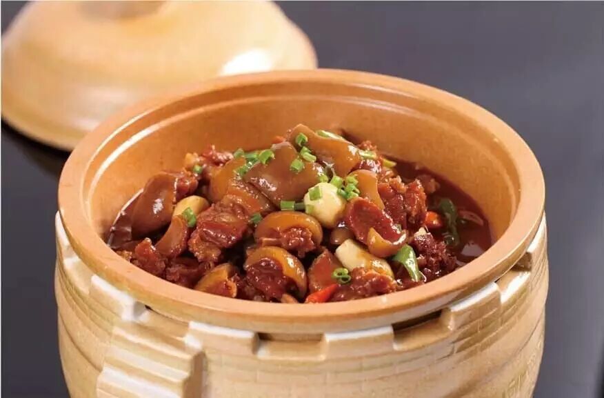 除了用小火慢慢煨之外,还可以加入熬出来的老火汤, 放进蔬菜、菌菇、竹笋打底,用炆火一起煮,老火慢慢炖煮食材,菌菇的鲜味渗透到猪肉里,而猪肉的肉汁又裹在菌菇的表面,相互糅合,口感绝佳。煮熟的猪肉被炖得非常酥嫩,完全吃不出油腻的感觉,猪皮更是极富弹性, 让人欲罢不能!