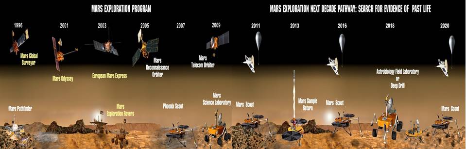 美国火星探测战略:2004年前后三项独立的研究均发现火星存在甲烷:欧空局火星快车的行星傅里叶光谱仪;夏威夷CFHT望远镜的傅里叶变换红外光谱仪;双子星望远镜的高分辨率红外线分光计。