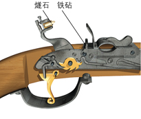 燧发枪利用燧石击打铁砧产生的火星引燃发射药