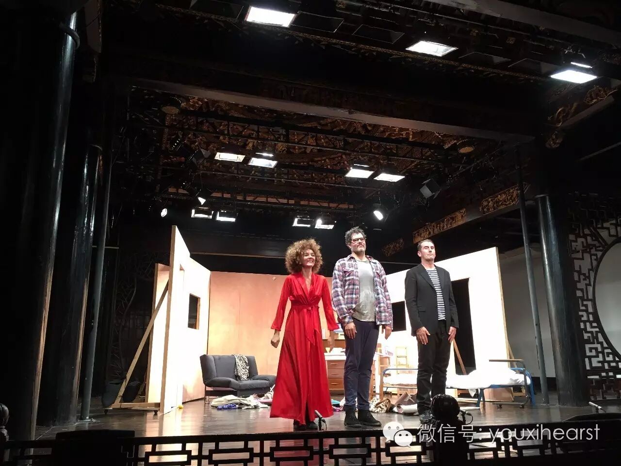 (是的,主演们就这样笑眯眯的看着所有观众陆续入场)
