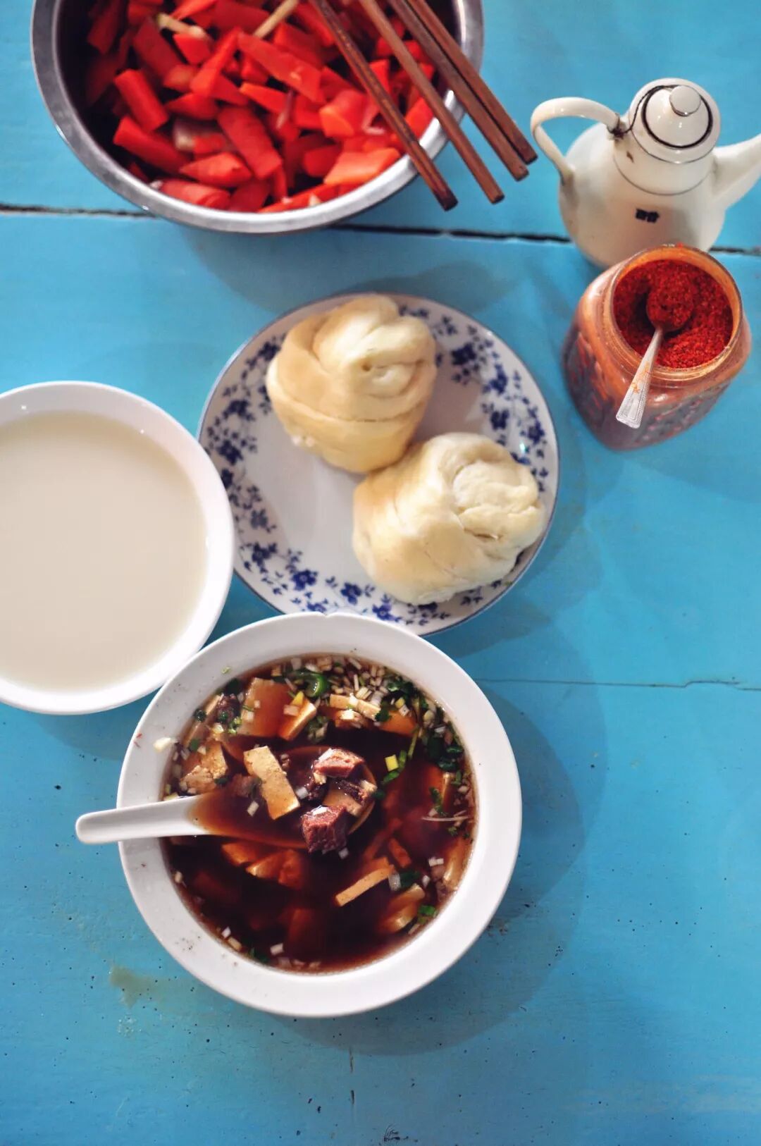 烩牛肉最好的部位是牛腩和肋扇的地方,牛肉吃起来有肥有瘦又有筋络,豆腐则吸足了牛肉和牛骨汤的香醇,嫩嫩的细抿即化了,一口烩牛肉一口花卷一口咸菜,咸香饱腹,早餐吃的横,一天人都硬,就又是个很满足的早上了。