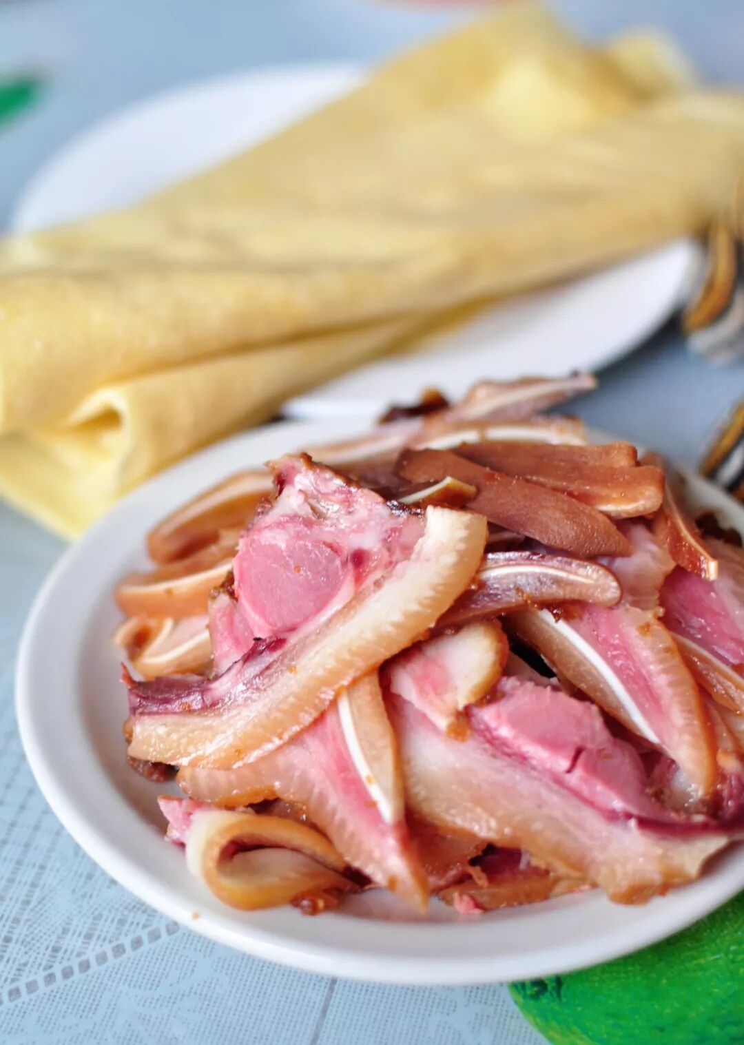 博山的早点是很有讲究的。若是吃煎饼卷猪头肉,讲究的是煎饼要热,猪头肉要凉且是要带肉冻的,而喝的,必须要配猪油猪血汤。煎饼一定是要热鏊现摊的小米煎饼,猪头肉要吃簸箕掌的,因为老家博山赵庄簸箕掌附近,以前有个肉联厂,簸箕掌村,因了挨着肉联厂的便利缘故,所以很多村民精于制作肉食,猪头肉和剔骨肉做的尤其好。