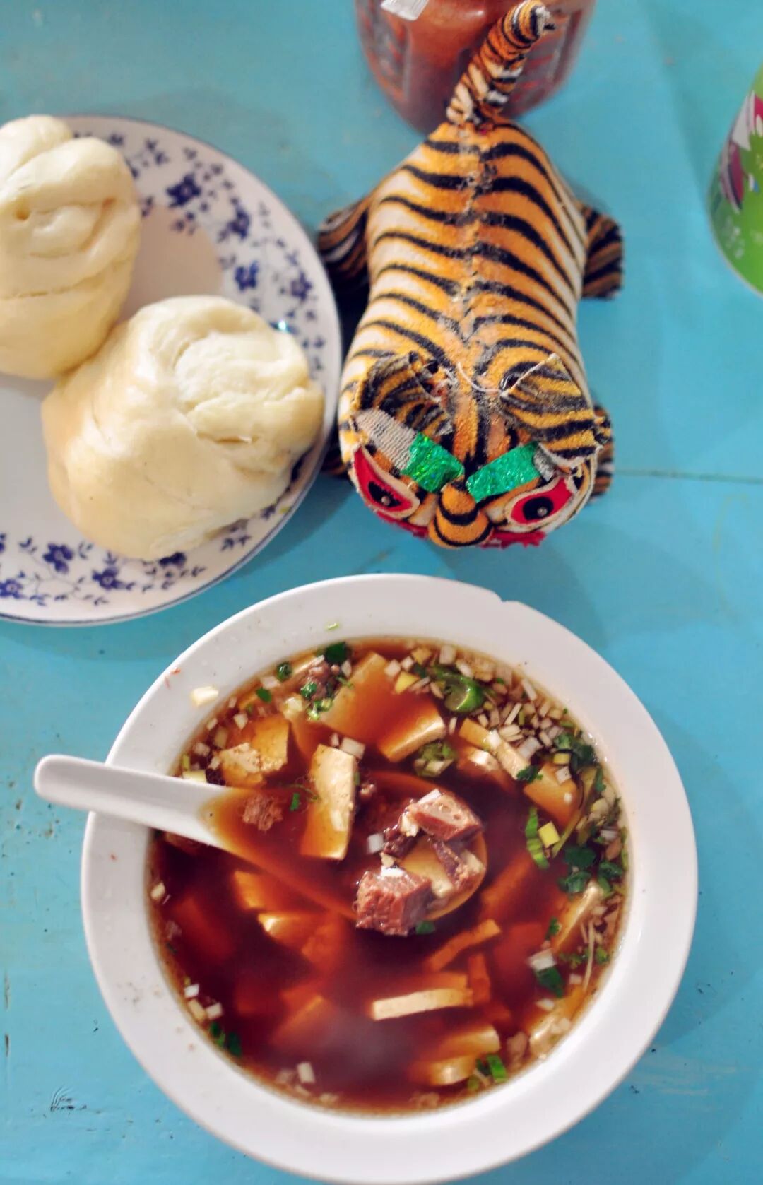 老虎每每回博山,早上,总是先去来一顿猪头肉卷煎饼,再去吃一碗烩牛肉。胃满足了,一天,也就开始了。胃口,回来了。心,也就回来了。