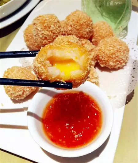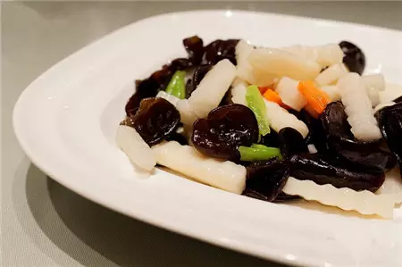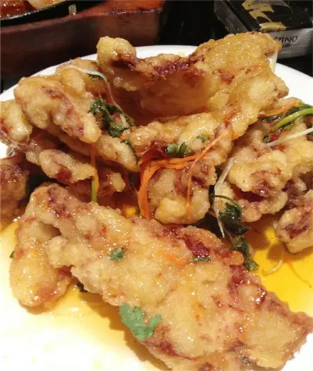 口感偏粤菜,属于粤菜和东北菜的融合吧,既有虾球等经典粤菜,也不缺乏牛排、炖鸡等口味偏重的东北菜系。(上图:鲜椒牛肋排,下图:灌汤虾球、木耳山药) |