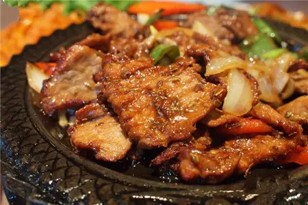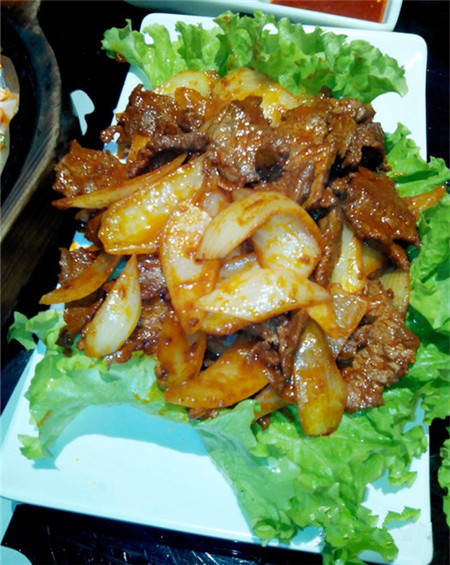 辣菜味道超级正宗,跟鸡西当地一样一样的。铁板牛肉很嫩,沾上辣酱用生菜夹着吃,美味无敌。(上图:辣菜中一种,下图:铁板牛肉、鳕鱼) |