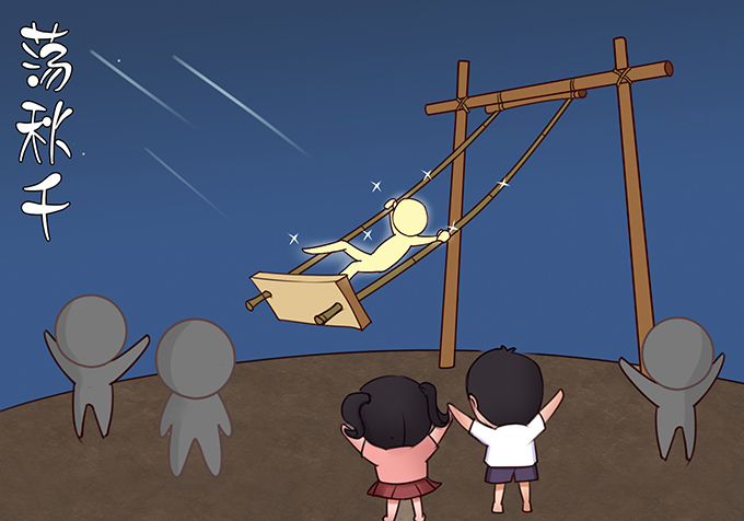 古时候的中秋佳节,广东潮汕地区有着一个独特的习俗——荡秋千。高达两层楼的单双座秋千和“十”字秋千,棚顶四周拉起一道道绳子,挂满五颜六色的绸花彩带。