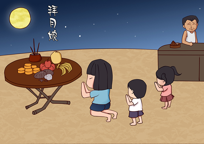 揭阳潮汕各地中秋谓拜月为拜月娘。月属阴,叫太阴娘,民间称为月娘。主要为妇女和小孩,成年男子多不进行叩拜,故有“男不圆月,女不祭灶”的俗谚。