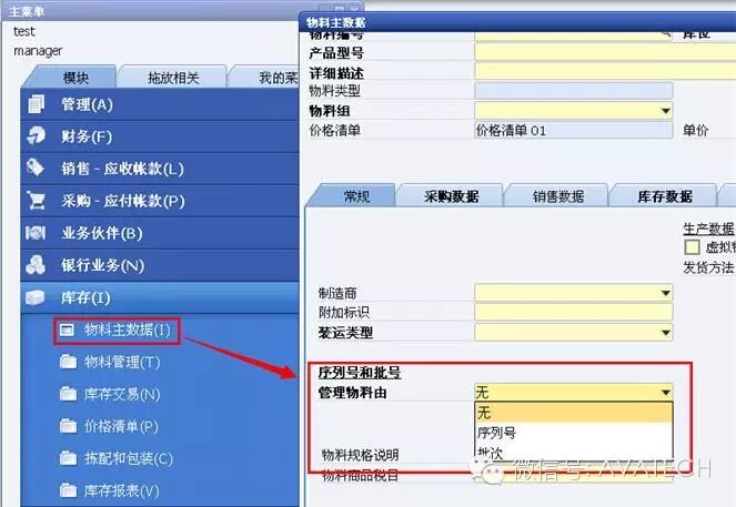 首先物料管理方法有三种:无、序列号管理、批次管理。