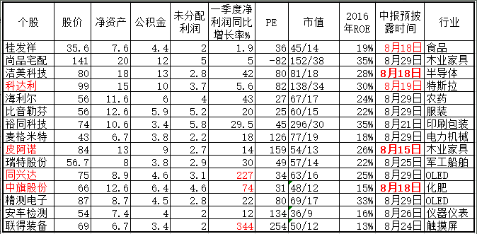 5、中报预披露时间(越早越好);