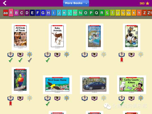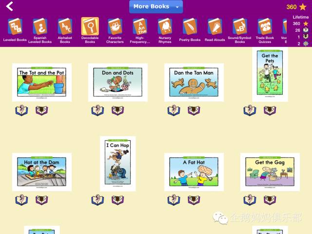 除了这些常规对应级别的阅读材料之外,在more books目录下,可以获得一些正对于于某种能力的加强版书籍目录,如Alphabet Books 和下图中Decodable Books。